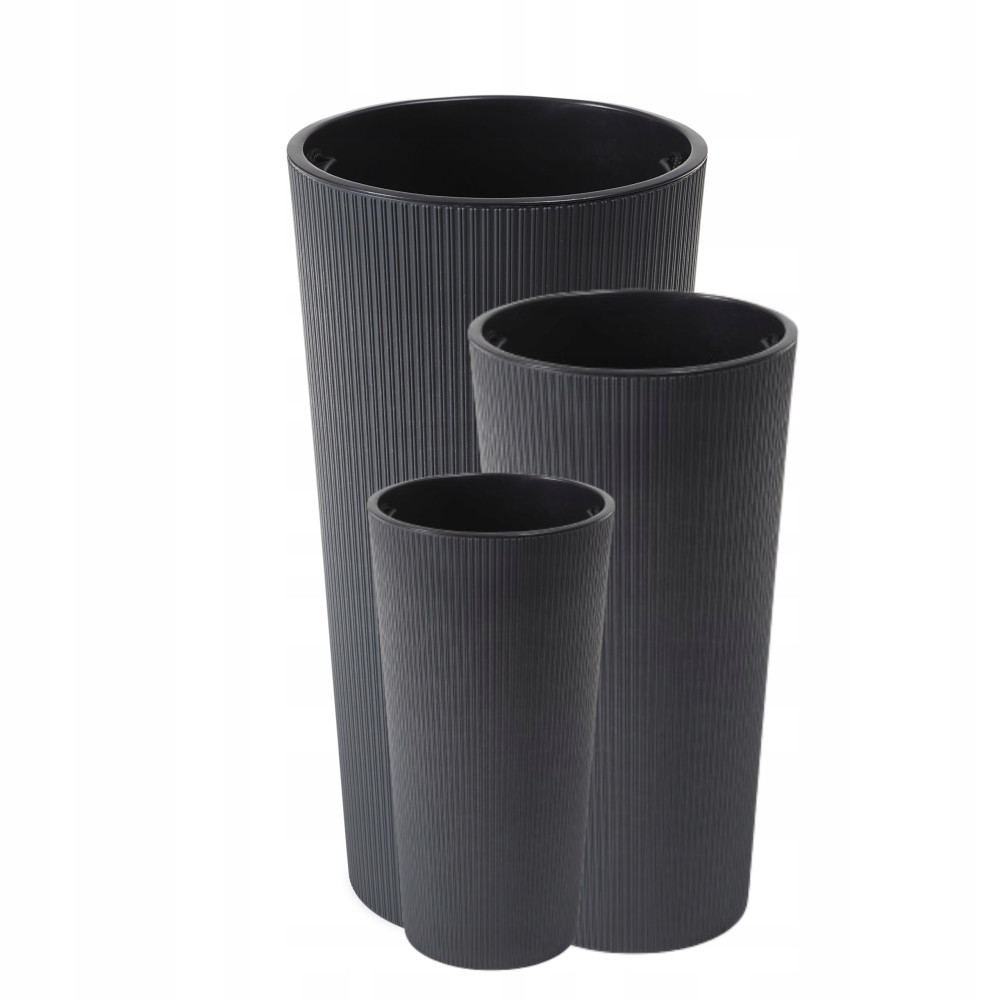 Set bestehend aus 3 x hohem Blumentopf LILIA JUMPER, Farbe GRAPHIT + Einsätze
