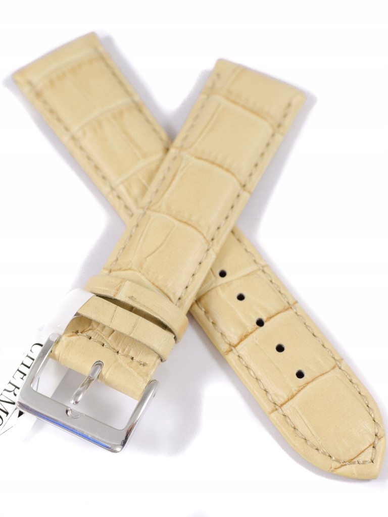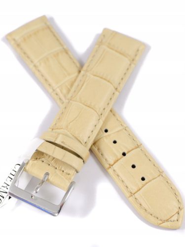 Langes XL-Uhrenarmband aus beigem Leder – 22 mm – Leder mit Krokodilmuster