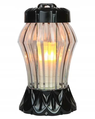 Lampion zrobiony z odpornego na warunki atmosferyczne tworzywa oraz szkła.