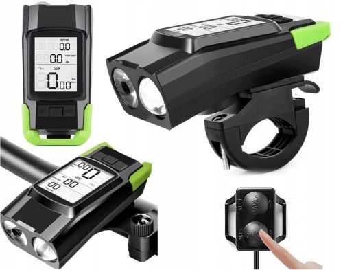 Mocna Lampa Rowerowa Przednia + Licznik + Dzwonek   BK-1718B