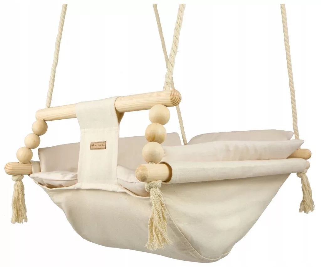Zaprojektowany w stylu skandynawskim, bujak charakteryzuje się prostotą i elegancją. Wykorzystanie naturalnych materiałów takich jak drewno i bawełna gwarantuje trwałość oraz bezpieczeństwo użytkowania.