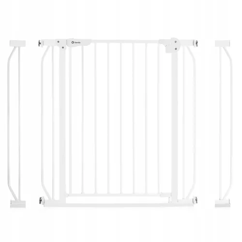 OSTRZEŻENIE – Niniejszej barierki bezpieczeństwa nie należy mocować w oknach. Niniejsza barierka bezpieczeństwa przeznaczona jest wyłącznie do użytku domowego. Szerokość otworów, dla których zaprojektowana jest niniejsza barierka: 75 - 85 cm do 105 cm z przedłużkami. Barierka bezpieczeństwa jest odpowiednia do użytkowania przez dzieci w wieku do 24 miesięcy. Barierka zamykana manualnie. Barierka rozporowa – montaż wyłącznie do płaskiej, stabilnej powierzchni za pomocą wkrętów.