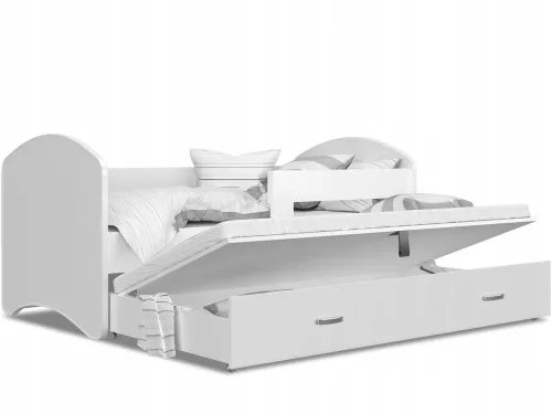 • Pojemna szuflada wysuwana na kółkach, mogąca służyć jako pojemnik na pościel lub zabawki. Szuflada jest oddzielnym elementem łóżka.