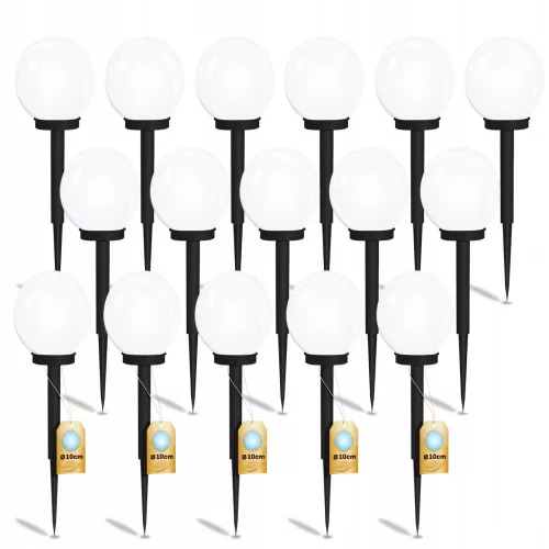 Zestaw 16x LAMPA SOLARNA Ogrodowa LED LAMPKA Wbijana KULA KULKA 10cm SZPIKULEC