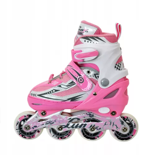 Trwałe i wygodne rolki rekreacyjne. Z zewnątrz zabezpieczone przed pękaniem poprzez wykorzystanie wzmocnionego plastiku PCV. W środku wyściełane wkładką oraz sprężystą skarpetą. Wewnętrzna część buta wykonana jest z oddychającej pianki o podwójnej gęstości, która doskonale dopasowuje się do stopy (MEMORY FIT) i zapobiega otarciom. Komfort jazdy uzupełnia łagodzący drgania i nierówności system SHOCK TECH.