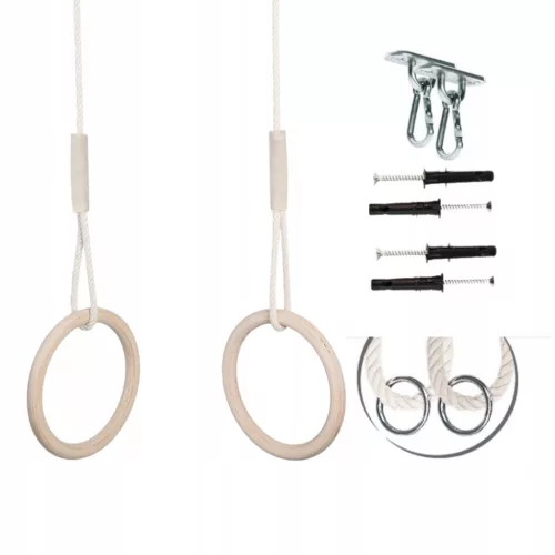 Kółka gimnastyczne dla dzieci można również zawiesić pod sufitem lub drzewem za pomocą wspornika. Kółka gimnastyczne dla dzieci nadają się do użytku wewnątrz i na zewnątrz. Części drewniane należy czyścić wilgotną szmatką.