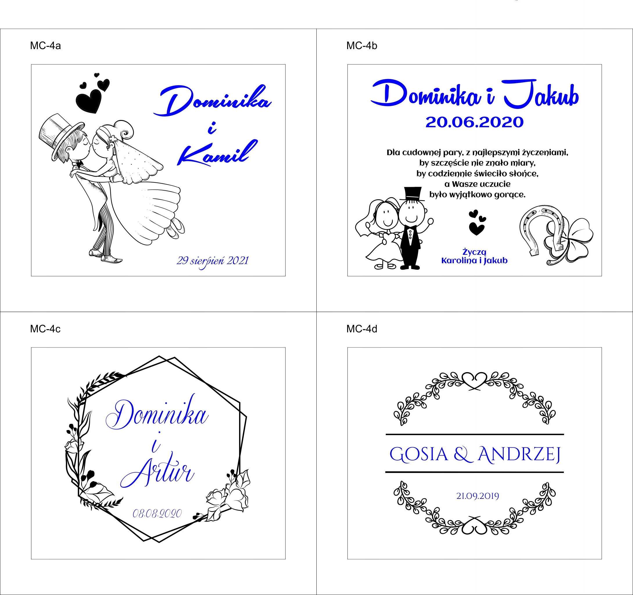Przy finalizacji zakupu prosimy podać w wiadomości dla sprzedającego numer projektu oraz własny tekst (imiona, data, dedykacja) zaznaczony na szablonie niebieską czcionką.