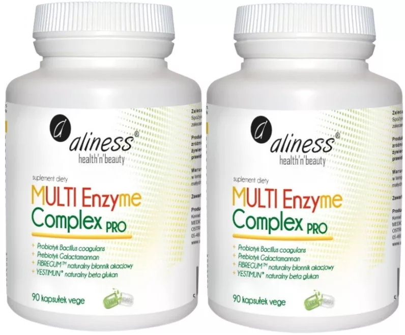 • MULTI Enzyme Complex PRO zawiera również kompleks probiotyczno-prebiotyczny zwany synbiotykiem. Zawarte w nim zarodniki bakterii Bacillus coagulans mogą być przechowywane w temperaturze pokojowej. Glactomannan to błonnik o działaniu prebiotycznym. Jest frakcją rozpuszczalnego włókna pochodzącego z błonnika pokarmowego, z nasion kozieradki pospolitej.