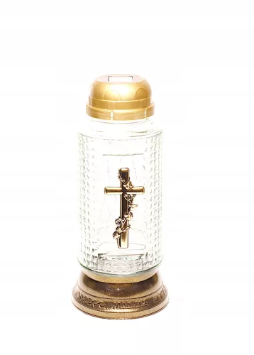 Znicz  zasilany światłem dziennym  .  symbol : solar 956 golden cross   .   Znicz solarny wyposażony w ogniwa fotowoltaiczne , które  w dzień gromadzą energię , a po zmroku zasilają diodę LED , która ładnie oświetla znicz . Czas świecenia ok 2 lata . Stabilna podstawa . Jest możliwość zdemontować nakładkę solarną i stosować w zniczu wkłady : olejowe , parafinowe i LED  , zwykły dekiel i wkład parafinowy  jest w komplecie  . Wysokość znicza : 26 cm , średnica otworu : 6 cm , solar 72 mm ,  długość wkładu : 15 cm , waga : 550 g ,  kolor znicza : przezroczysty , dodatki w kolorze złotym .  Dostępny także na sztuki . W naszej ofercie także więcej ciekawych zniczy .