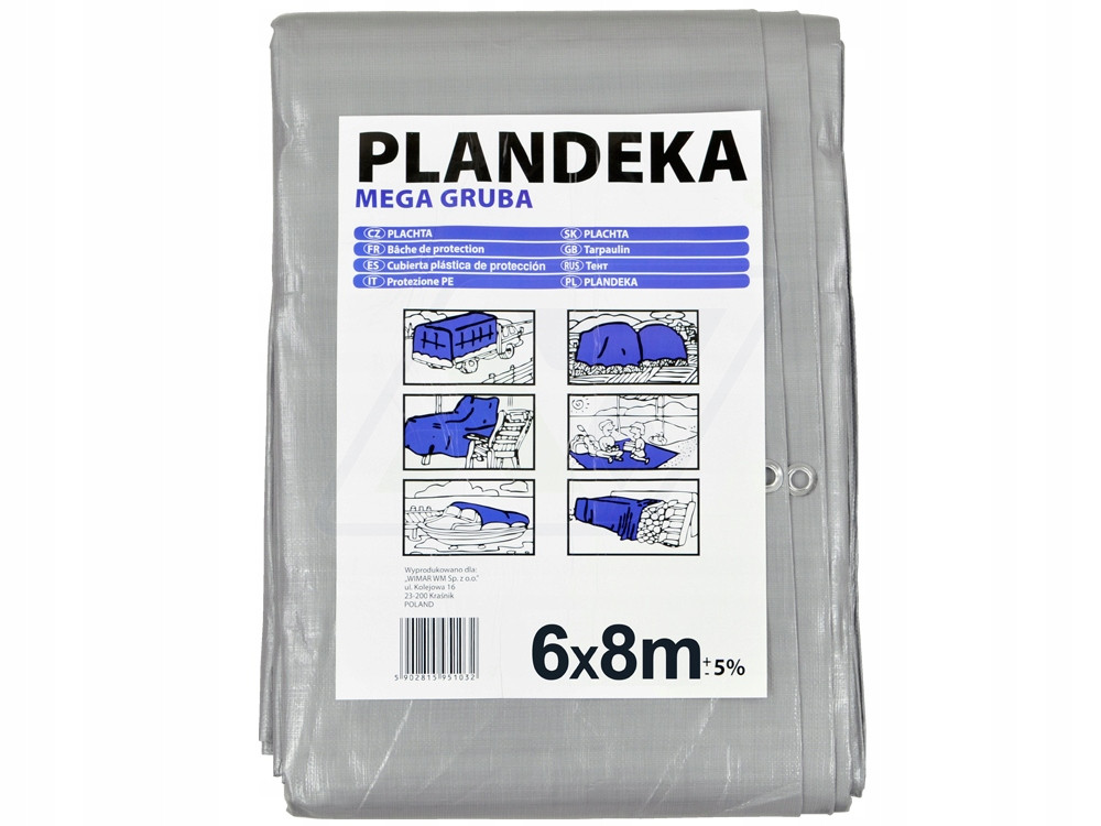 Mega Gruba plandeka o gramaturze aż 260 g/mkw i wymiarach 6x8 metrów.
