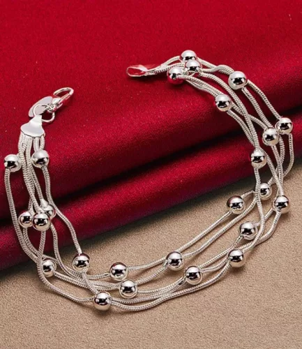 Mehrschichtiges Damen-Seilarmband aus Silber mit pr925-Kugeln + BOX