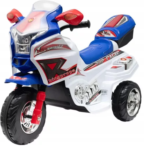 Dzięki unikalnemu designowi (tourer) oraz bogactwu efektów dźwiękowych i świetlnych, Twój mały motocyklista lub motocyklistka przeżyje prawdziwe chwile radości z motocyklem na akumulator marki Baby Mix. Masywne, plastikowe koła, najwyższa jakość wykonania, czy szerokie i wygodne siedzisko sprawią, że jazda będzie bardziej komfortowa.Sterowanie motocyklem odbywa się poprzez naciśnięcie pedału na podnóżku, a po jego zwolnieniu motocykl hamuje. Sterowanie jazdą do przodu i do tyłu odbywa się poprzez przełączanie przycisku jazdy do tyłu. Tylne koła napędzane są przez mocny silnik 6V/18W zasilany z akumulatora 6V/4,5 Ah. Mali podróżnicy będą zachwyceni rewelacyjnymi funkcjami, takimi jak światła LED, dźwięk odpalanego motoru, klakson czy wesołe melodie z możliwością odsłuchu na słuchawkach. (słuchawki nie są dołączone)Zalecamy noszenie kasku ochronnego podczas jazdy.CHARAKTERYSTYKA:- Ponadczasowy design, światła LED, efekty dźwiękowe i świetlne- Najwyższa jakość wykonania, szerokie i wygodne siedzisko- Napęd na koło tylne- Prędkość pojazdu: 3,5-4 km/h- Maksymalne obciążenie: 40 kg- Przeznaczony dla dzieci w wieku od 3 do 7 lat- Czas ładowania baterii: 10-12 godzin- Czas pracy na jednym ładowaniu: 1-2 godziny- Napęd: 1 x silnik 6V/18W, akumulator: 6V/4,5AhWYMIARY:- 112 x 47 x 78 cm- Waga motocykla 8,2 kgOPAKOWANIE:- Motocykl -1szt- Instrukcja w wielu językach: CZ, SK, PL, HU, EN, DE- Bateria 6V 4,5Ah - 1szt- Ładowarka: wejście AC 220V 50-60Hz, wyjście DC 6V 500MA - 1szt- Waga: 9,7 kg- Wymiary: 75 x 47 x 44,5 cm