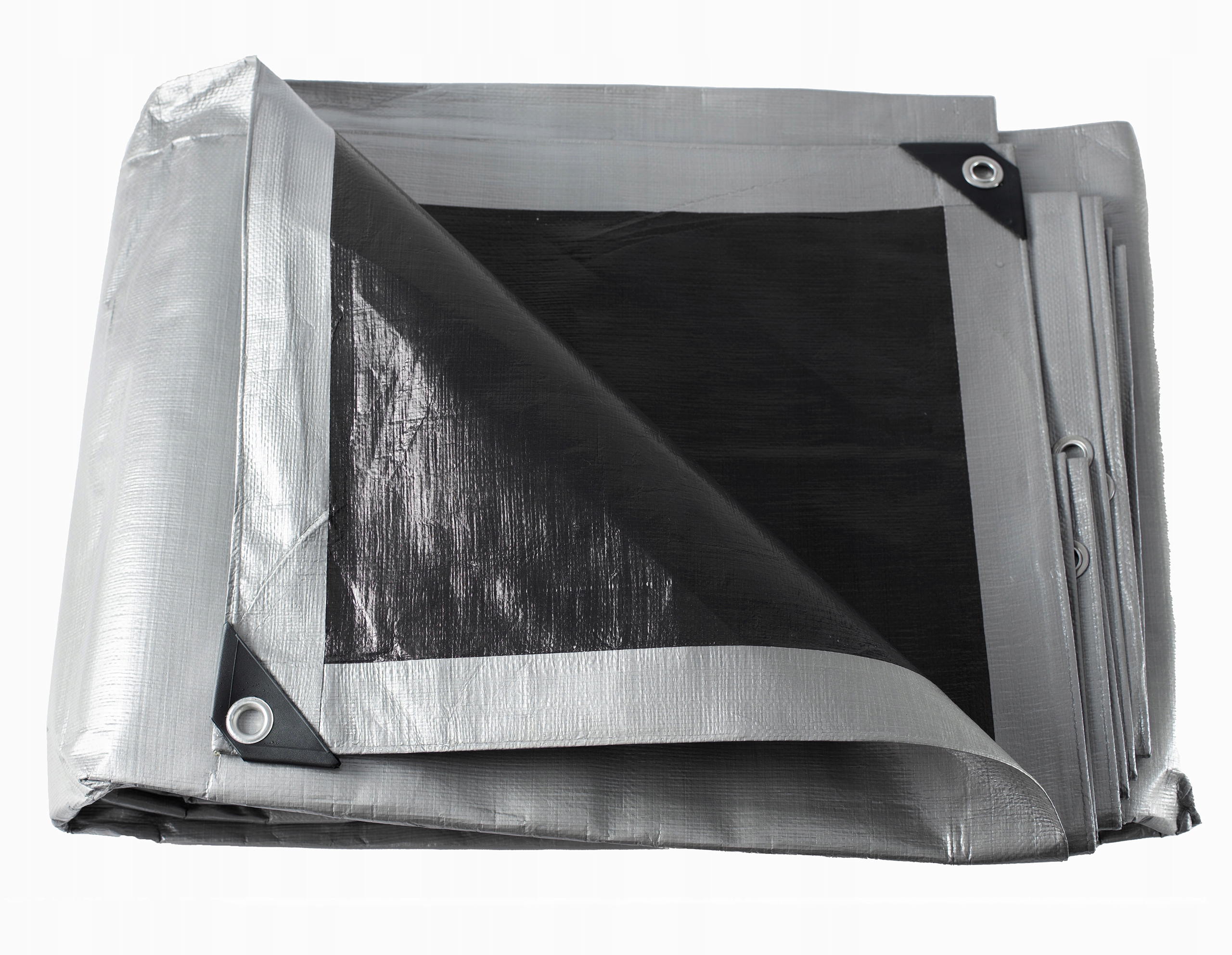 Plandeka Srebrno-Czarna wodoszczelna, wodoodporna, Filtr UV++ 6x10M 260g