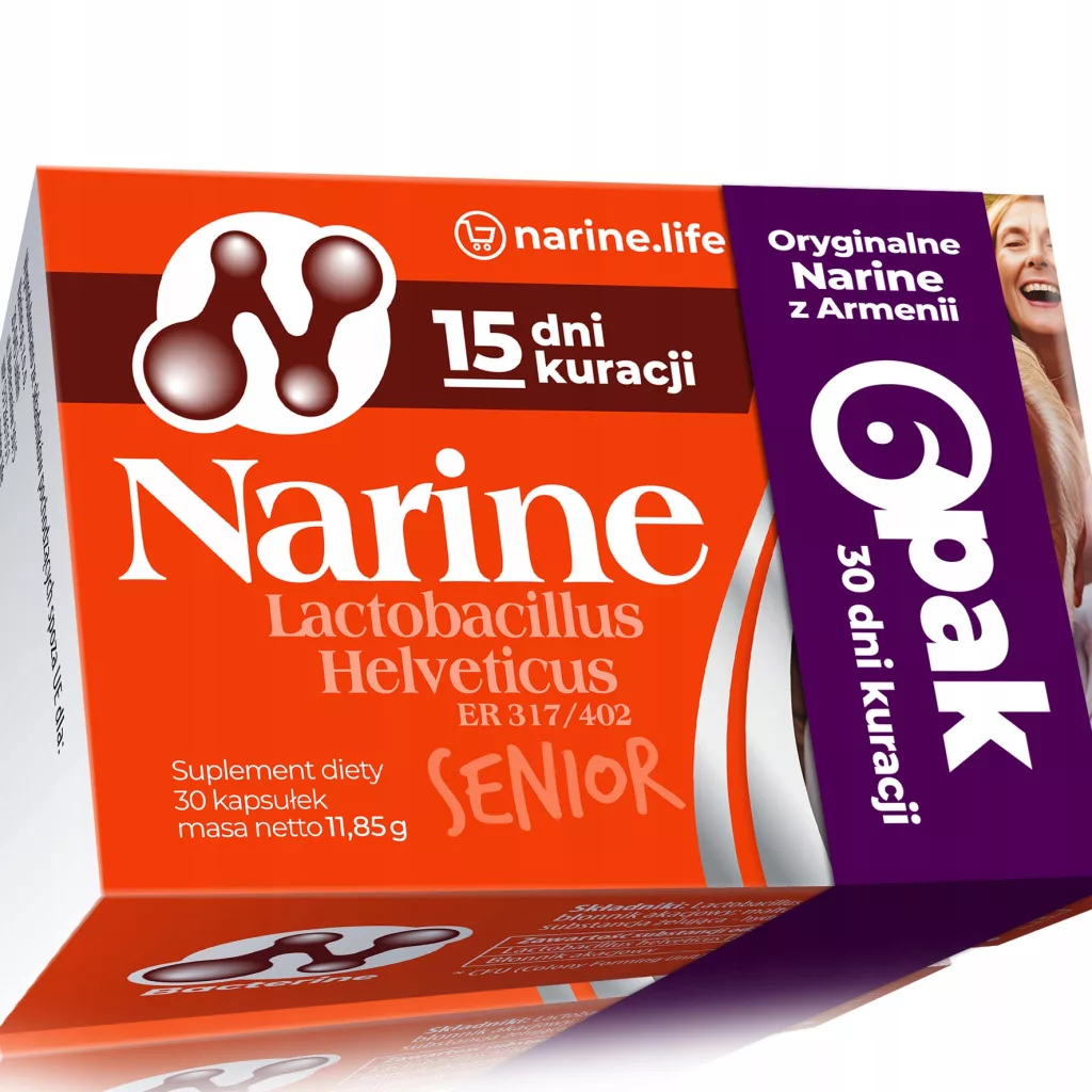 Poznaj Narine – oryginalny probiotyk oparty na żywych kulturach bakterii Lactobacillus helveticus ER-317/402. Produkt został dodatkowo wzbogacony o naturalny prebiotyk – błonnik akacjowy, który stanowi pożywkę dla bakterii kwasu mlekowego, potęgując ich pozytywne działanie.
