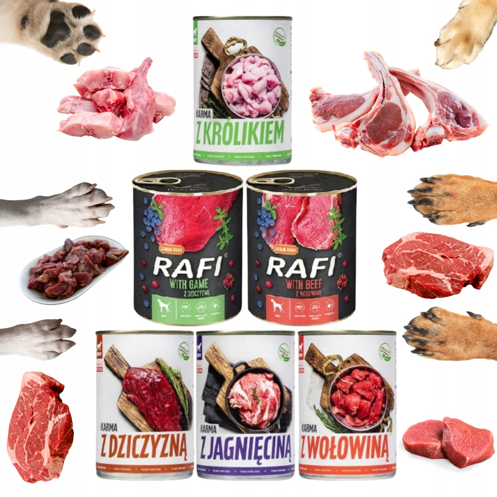 ⭐Karma pełnoporcjowa dla dorosłych psów wszystkich ras Rafi 800g - 6 sztuk + TufTuf  800g mix smaków - 6 sztuk⭐