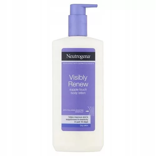 NEUTROGENA Visibly Renew Innowacyjna emulsja do ciała do codziennego stosowania zapewnia długotrwałe nawilżenie i pomaga przywrócić skórze elastyczność, dając efekt, który widzisz i czujesz. Zawiera intensywne nawilżającą Formułę Norweską i aktywne minerały, które pomagają zwiększyć produkcję kolagenu w skórze*. Nietłusta konsystencja szybko się wchłania.