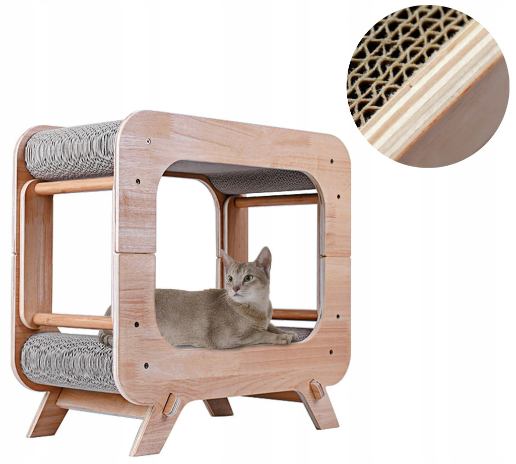 Dwupoziomowa struktura drapaka wyposażona jest w aż dwie szerokie maty do drapania. Zostały one wykonane z kartonu o falistej strukturze, który świetnie nadaje się do zaspokojania naturalnej potrzeby drapania, pozwalającej utrzymać pazury w dobrym stanie i przyczyniającej się do ich pięlegnacji. Dzięki temu kot nie będzie musiał więcej szukać innych powierzchni do drapania takich jak meble czy tkaniny. Każda z mat jest wystarczająco szeroka, aby kot mógł wygodnie również na niej odpoczywać.