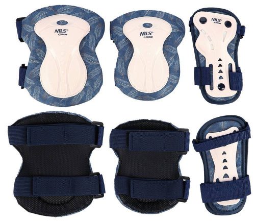 H727 Nils Extreme to zestaw ochraniaczy na nadgarstki, łokcie i kolana. Wykonany z wysokiej jakości materiałów. Skorupa zaprojektowana z mocnego i lekkiego tworzywa, które w maksymalnym stopniu zabezpieczają nadgarstki, łokcie i kolana przed urazami.. Wszystkie ochraniacze wyposażone są w zapięcie na rzepy, dzięki czemu utrzymują ochraniacze we właściwym miejscu. Zaprojektowane tak, aby użytkownik czuł się nie tylko bezpiecznie i komfortowo, ale również stylowo dzięki oryginalnej kolorystyce i trendowych wzorach.