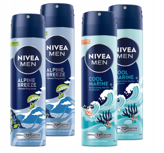 Wypróbuj limitowaną, artystyczną edycję antyperspirantu NIVEA MEN Alpine Breeze o wyjątkowej kompozycji zapachowej! Antyperspirant zapewnia niezawodną, 72-godzinną ochronę przed potem i nieprzyjemnym zapachem pod pachami. Formuła antyperspirantu nie zawiera alkoholu etylowego. Tolerancja dla skóry została potwierdzona dermatologicznie. Wzbogać swoją rutynę pielęgnacyjną o ten orzeźwiający zapach i ciesz się pewnością siebie przez cały, długi dzień. Wypróbuj teraz artystyczną edycję limitowaną antyperspirantu NIVEA MEN Alpine Breeze i ciesz się długotrwałą świeżością o wyjątkowym zapachu przez cały długi dzień!