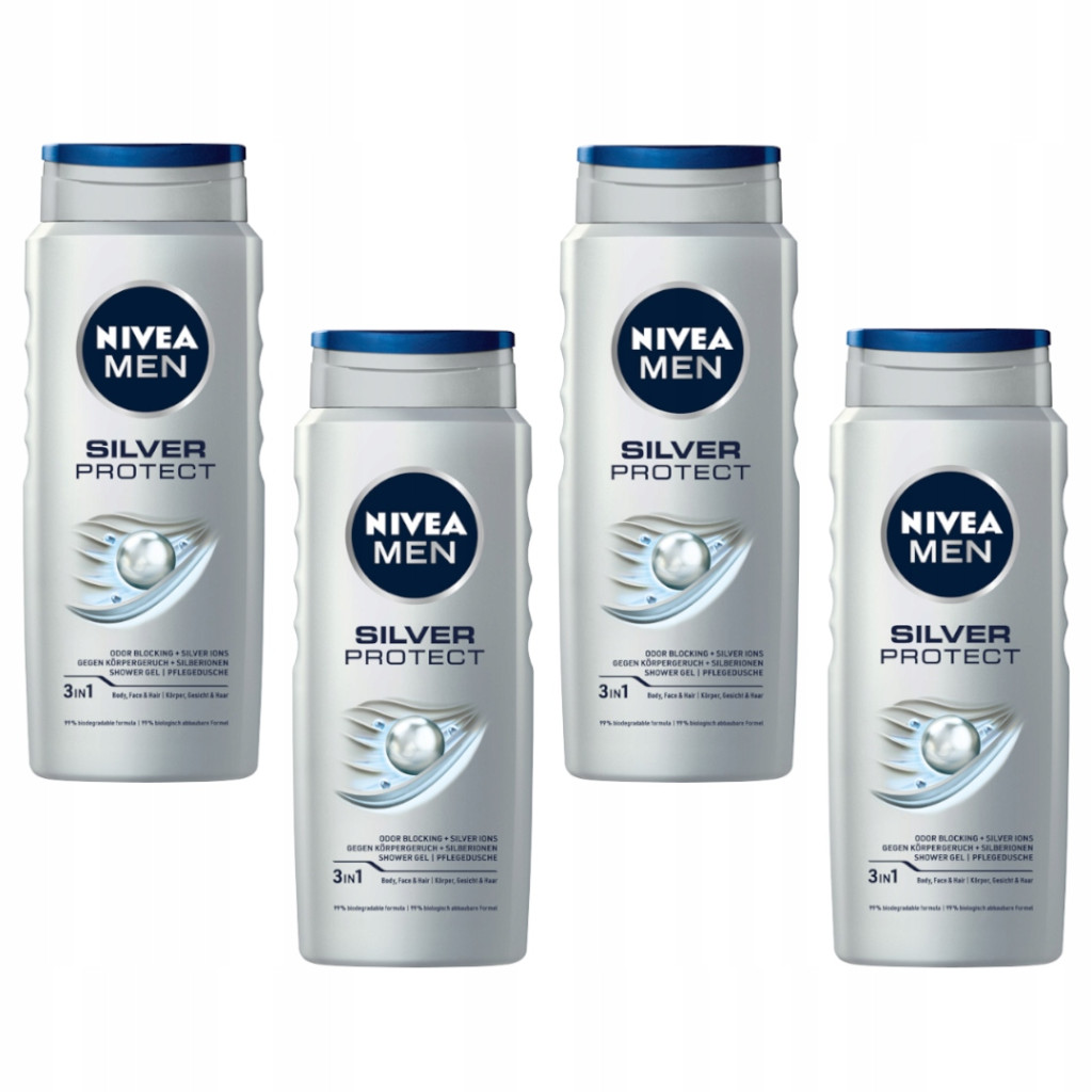 - 4 x NIVEA MEN Silver Protect Żel pod prysznic, 500 ml