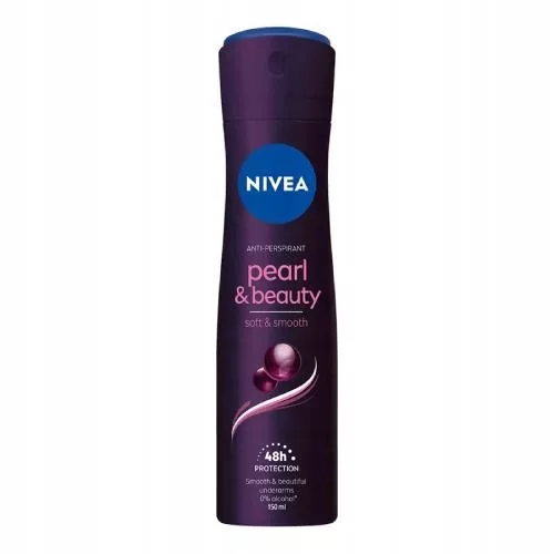 Antyperspirant w sprayu dla kobiet Nivea Pearl & Beauty Black Pearl zawiera drogocenny wyciąg z czarnej perły, który delikatnie zadba o piękno Twojej skóry. Zapewnia długotrwałą ochronę przed poceniem przez 48h oraz miękką i gładką skórę pod pachami. Posiada intensywny kobiecy zapach dzięki olejkom perfumowanym. Produkt nie zawiera alkoholu etylowego i jest w pełni bezpieczny dla skóry.