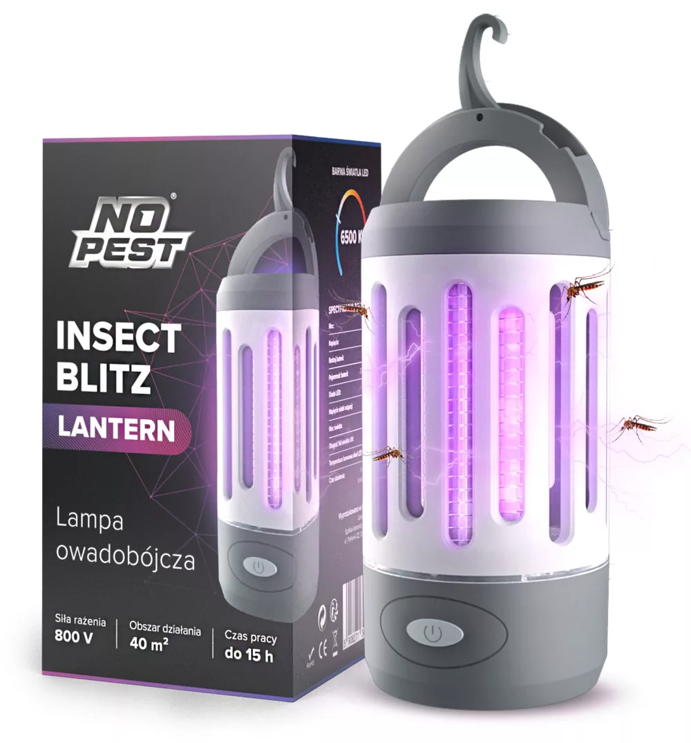 Lampa na komary, muchy, meszki, osy i inne owady - Przenośna lampa owadobójcza Insect Blitz Lantern NO PEST