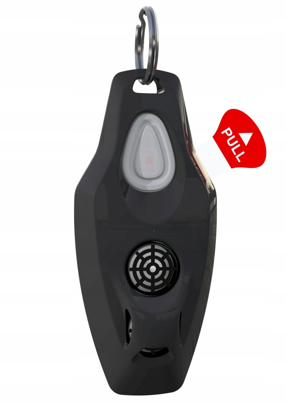 Wyciągnij zakładkę, aby aktywować baterię litową w środku. Aby włączyć lub wyłączyć urządzenie, naciśnij przycisk i przytrzymaj go przez 3 sekundy: po włączeniu emituje pięć szybkich mignięć, po wyłączeniu jedno długie mignięcie. Aby sprawdzić, czy urządzenie działa, szybko naciśnij przycisk i sprawdź, czy dioda LED miga. Średnia żywotność baterii (której nie można wymienić) wynosi co najmniej 2400 godzin. Urządzenie wyłącza się automatycznie po 24 godzinach. Używaj zawsze na zewnątrz. Używanie w torbie, plecaku znacząco ogranicza skuteczna ochronę. Pamiętaj żadne urządzenie nich chroni w 100%.