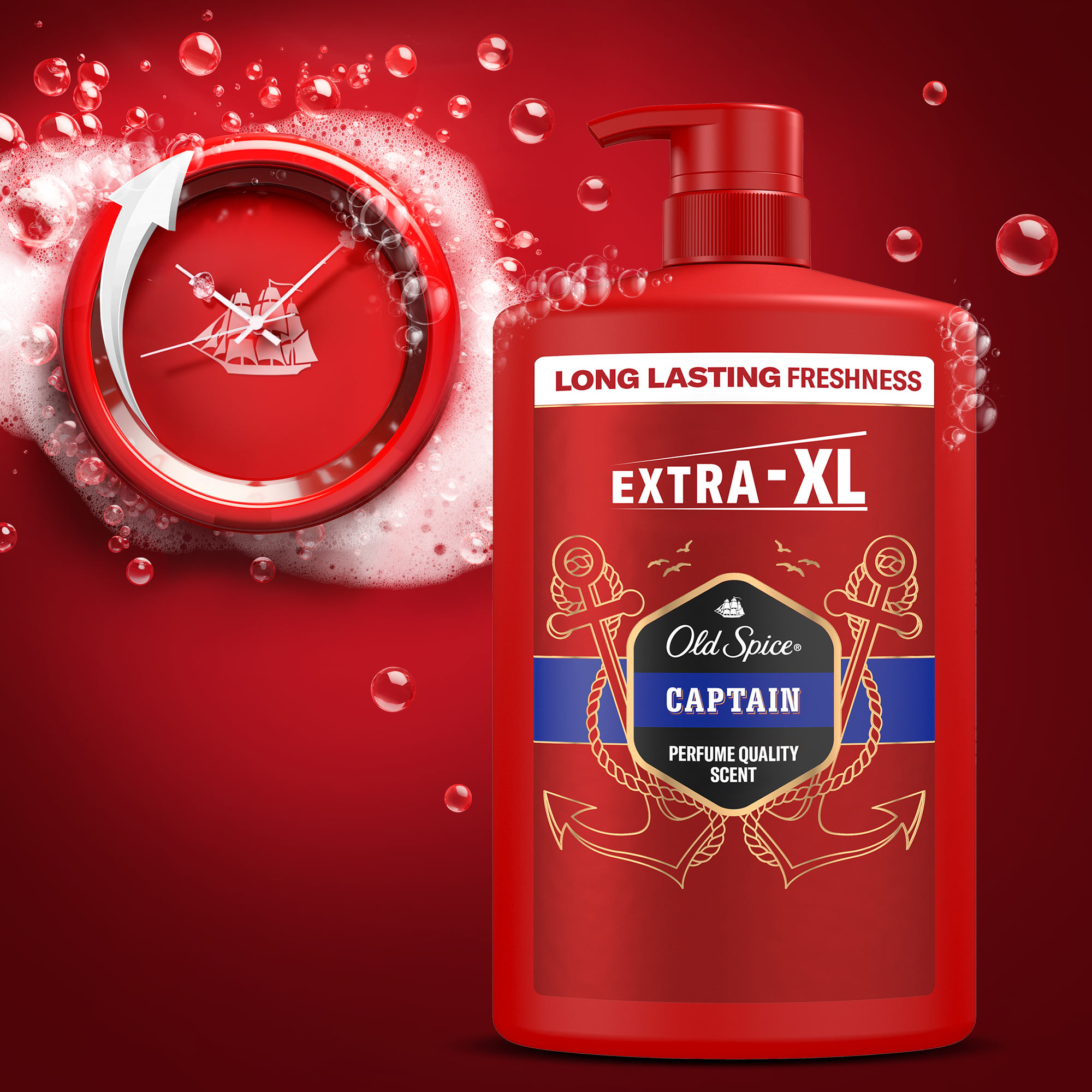Old Spice Captain Męski płyn do kąpieli, Żel pod prysznic i szampon 3w1, 4x1L Jeszcze więcej dni z długo utrzymującą się świeżością o jakości perfum i wygodna pompka, dzięki której każdy może łatwo używać żelu.