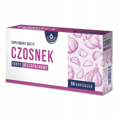 Czosnek forte bezzapachowy zawiera w swoim składzie macerat olejowy z czosnku standaryzowany na 2% zawartość alliiny. Czosnek (Allium sativum L.) wspiera prawidłowe funkcjonowanie układu odpornościowego. Ponadto wspomaga pracę serca oraz utrzymanie prawidłowego poziomu cholesterolu we krwi.