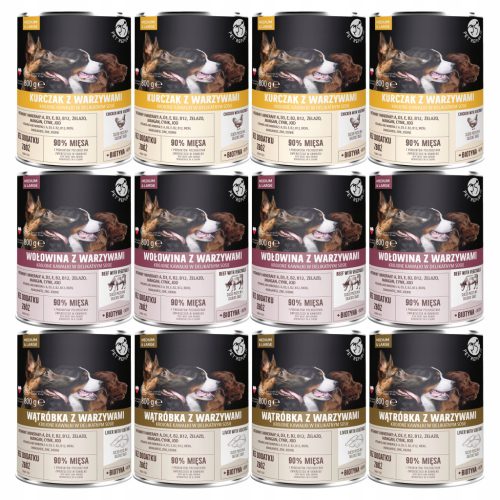 ⭐️ Krojone kawałki mięsa z warzywami dla psów wszystkich ras, serwowane w delikatnym sosie stanowiącym zaproszenie do pysznego posiłku. 90% mięsa i produktów pochodzenia zwierzęcego w kawałku!