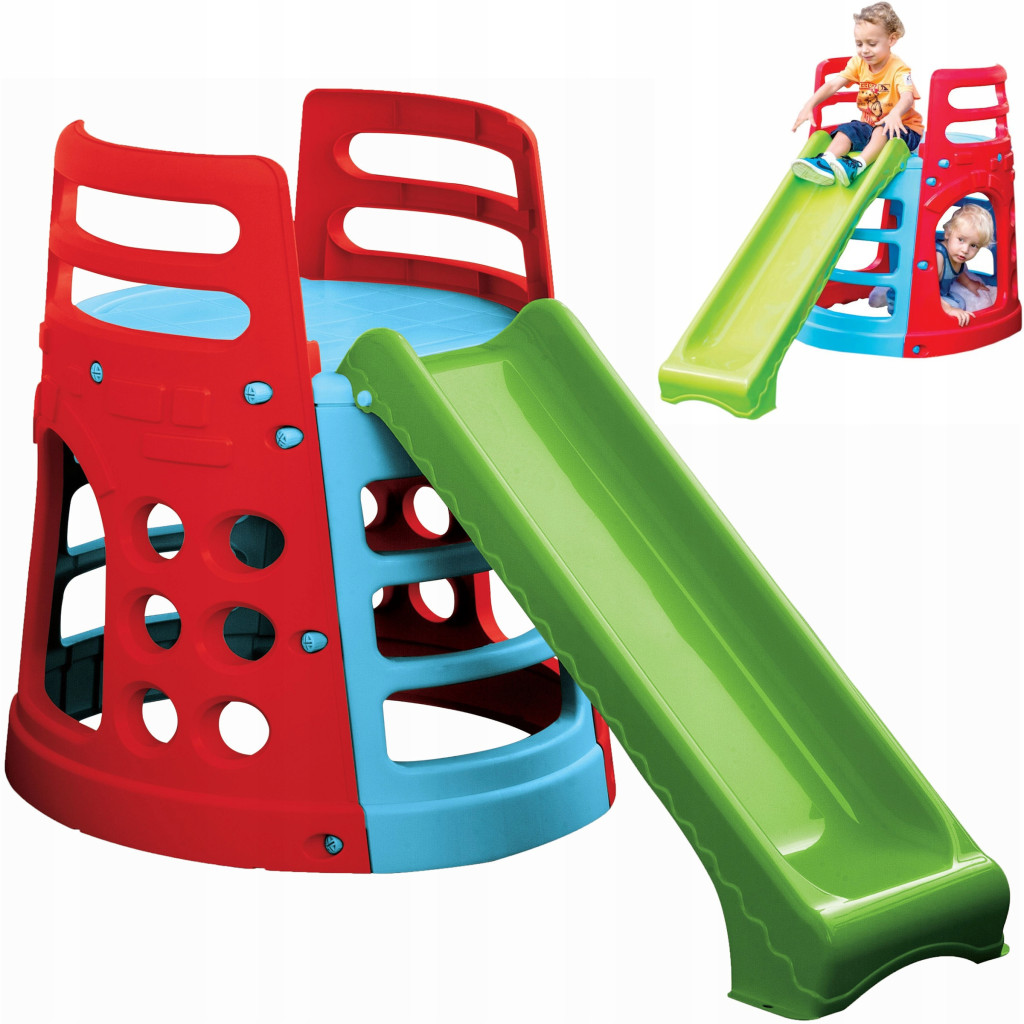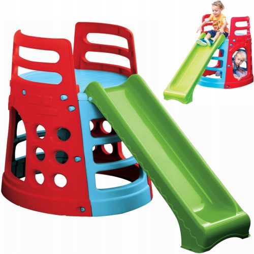 Wielofunkcyjna zabawka ogrodowa – wspinaczka, zjeżdżania, zabawa wewnątrz wieży lub na niej. Pod spodem znajduje się kryjówka - domek, do której pociechy mogą udać się na misje specjalne...