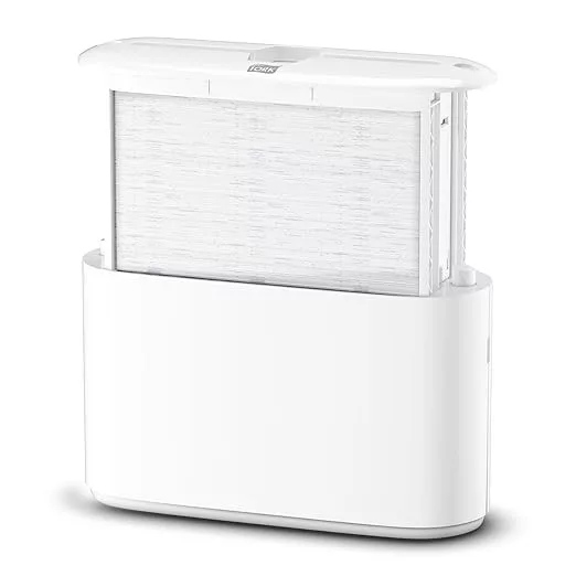 Tork Xpress® nablatowy dozownik do ręczników Multifold (w składce wielopanelowej) z linii Elevation to doskonały sposób na zapewnienie dostępności ręczników na blacie łazienkowym. Dozowniki Tork Elevation wyróżniają się praktycznym i nowoczesnym wyglądem, który zapada w pamięć gości.