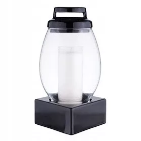 Duży znicz z przezroczystym szklanym kloszem i solidną podstawą łączy moc wyrazistej formy z delikatnym kształtem inspirowanym kwietnym kielichem tulipana. Doskonale podkreśla ciepło płomienia, wywołując wrażenie zaglądania do wnętrza pięknej rośliny.