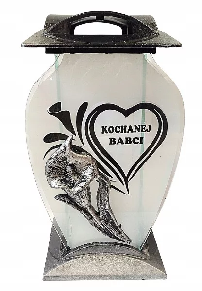 PIĘKNY DUŻY ZNICZ Z NAPISEM KOCHANEJ BABCI  32 CM