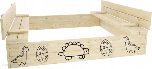 Piaskownica wykonana jest z ekologicznie pozyskanego drewna sosnowego z w pełni bezpiecznym nadrukiem UV.