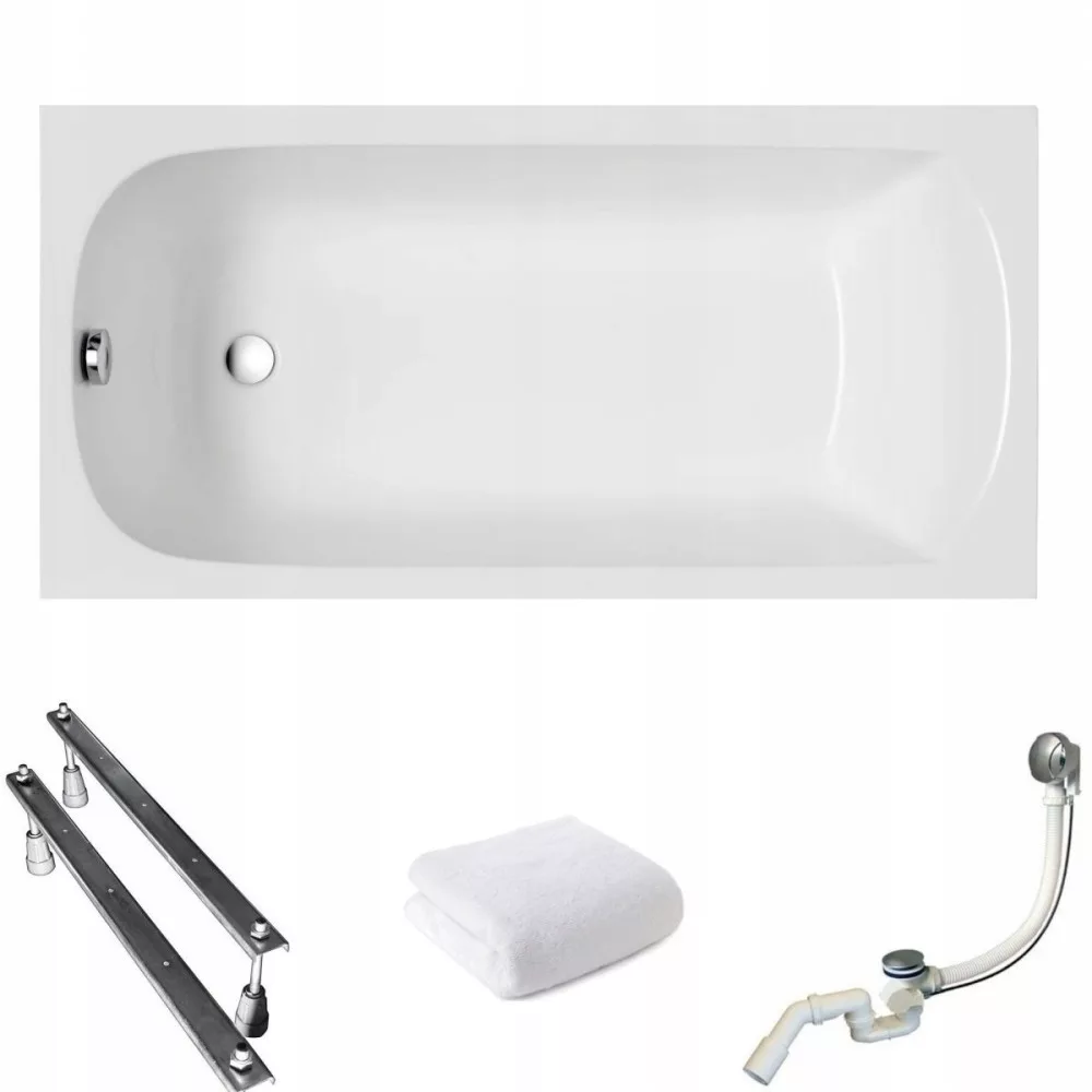 Klassische rechteckige Badewanne 120x70 Besco ohne Siphon, Rahmen, Beine, HandtuchWann