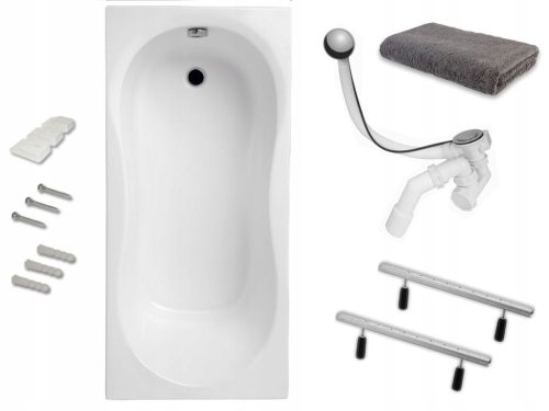 Wanna akrylowa POLIMAT GRACJA 140x70 + syfon automatyczny + stelaż z nogami + uchwyty mocujące do ściany + ręcznik łazienkowy
