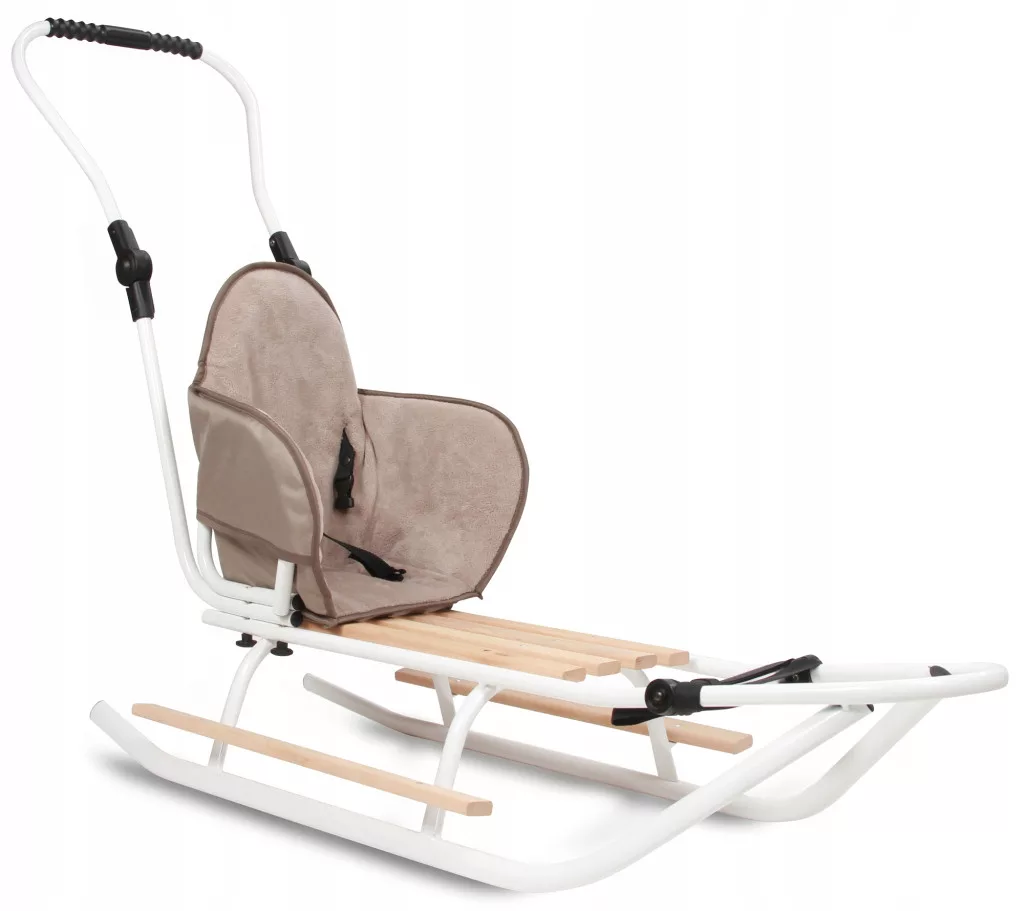 Polskie SANKI DIDIBABY z wysokim OPARCIEM i regulowanym PCHACZEM + MATERACYK