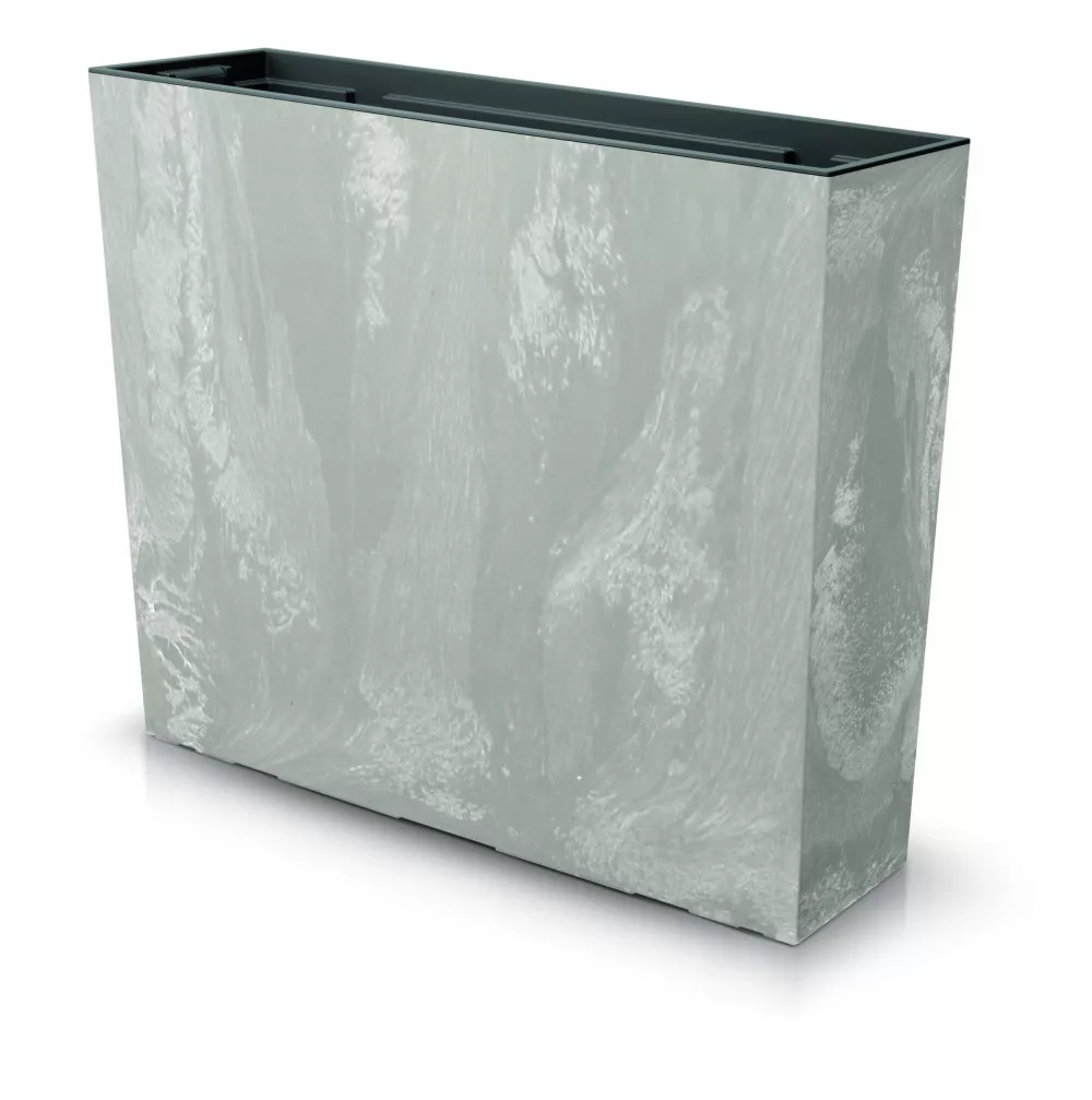 Nowoczesna donica typu wysoka skrzynka. W zestawie z wkładem posiadającym praktyczne rączki do wyciągania.