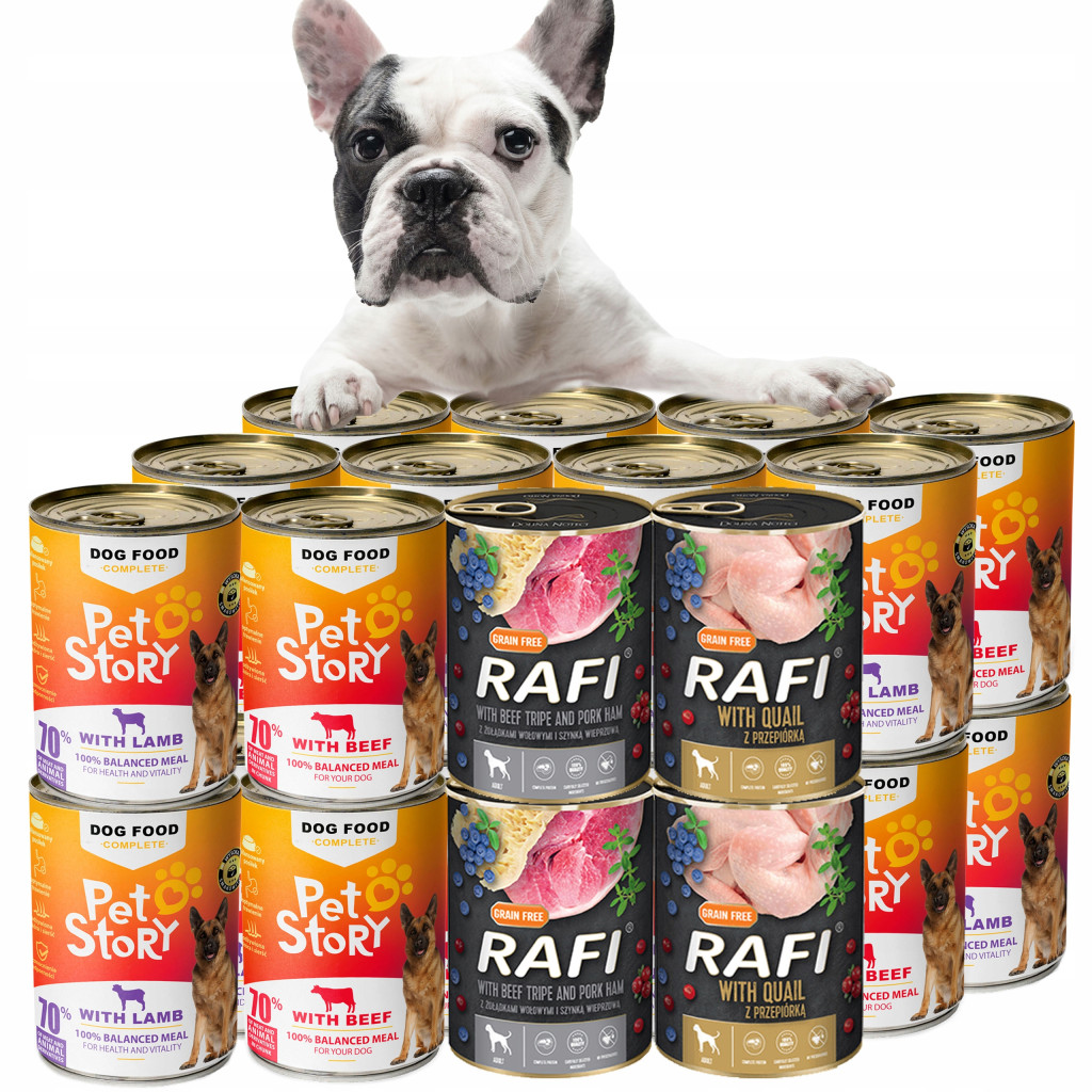 Zestaw karm mokrych dla psa Petstory 20x400g oraz Rafi 4x400g w pysznych smakach: