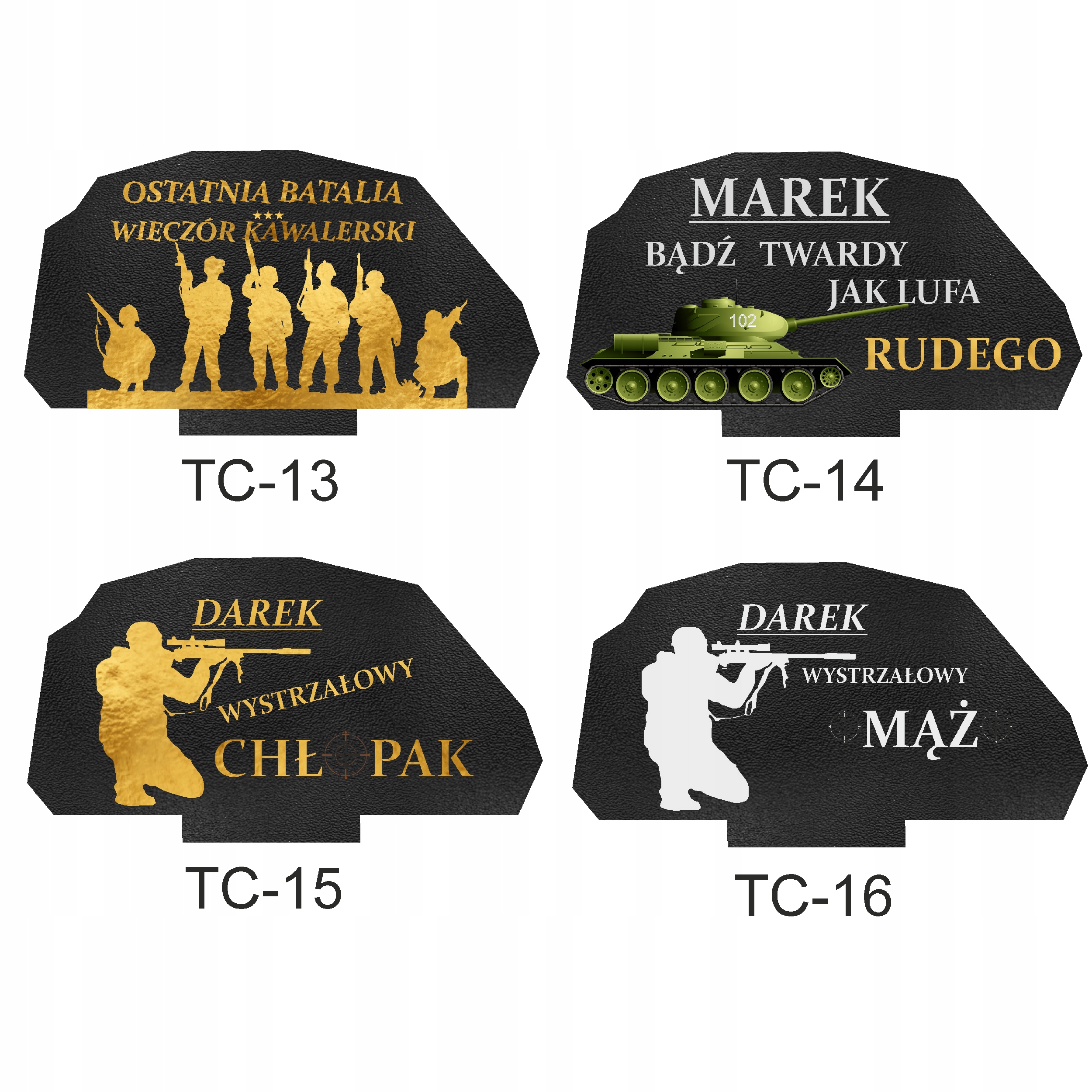 Na każdym czołgu znajduje się przygotowany na specjalną okazję, spersonalizowany napis co sprawia, że upominek jest jeszcze bardziej wyjątkowy i osobisty.