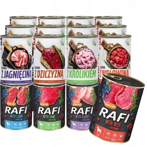 Mokra karma RAFI PREMIUM i TUF TUF Mix smaków 24x400g