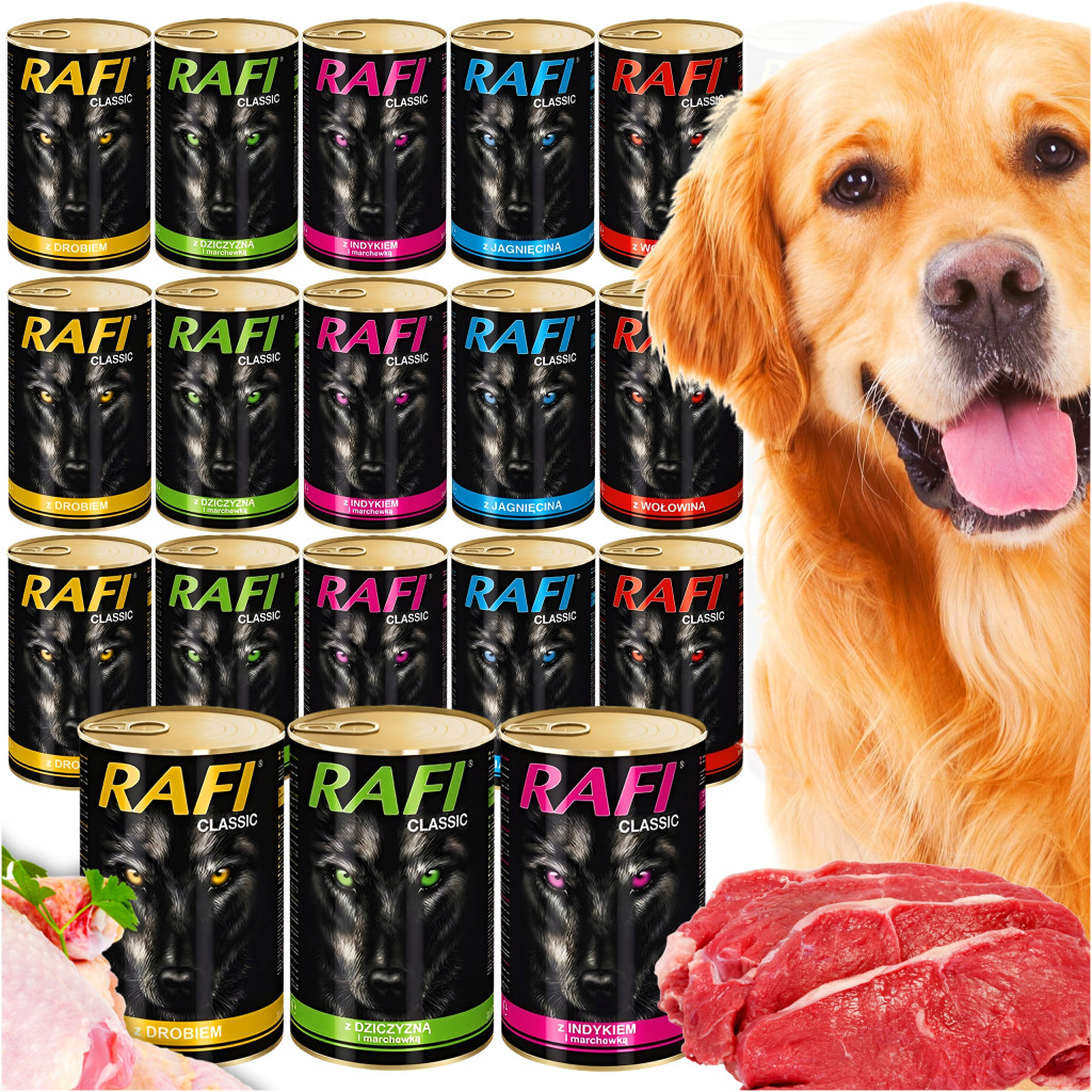 ⭐Karma dla psa RAFI CLASSIC kawałki w sosie 1240g - 18 puszek⭐