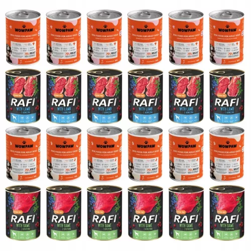DOLINA NOTECI RAFI MOKRA KARMA DLA PSA MIX SMAKÓW PUSZKA 24X400G + WOWPAW