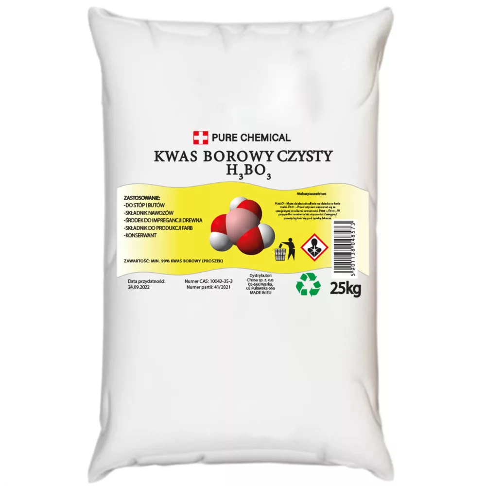 • kwas borowy w opakowaniu 25kg