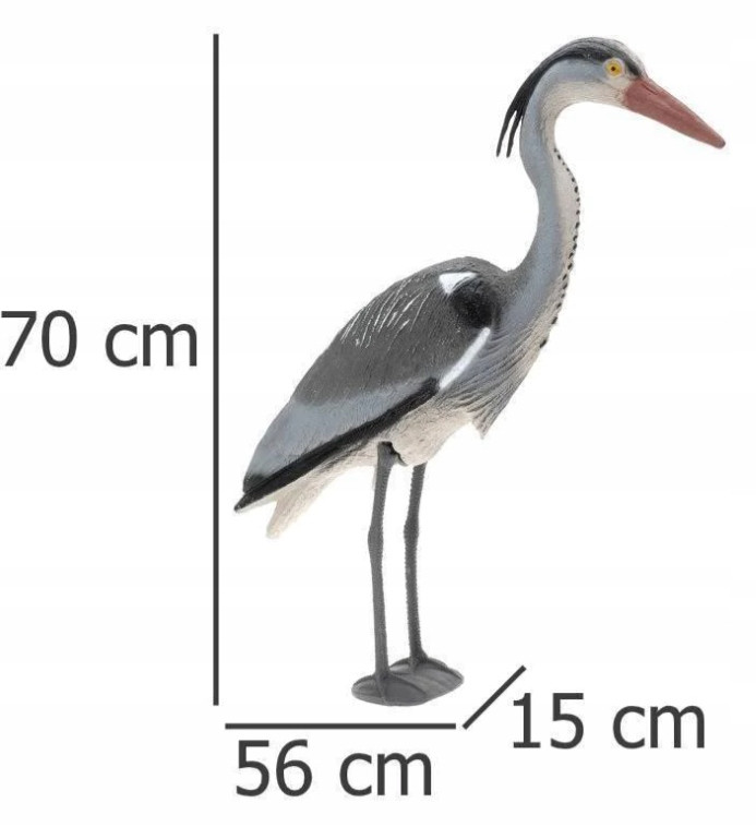 Dekoracyjna figurka ogrodowa w kształcie czapli. Idealnie ozdobi oczka wodne lub staw. Wykonana z tworzywa sztucznego odpornego na warunki atmosferyczne i promienie UV. Estetyczne i staranne wykonanie sprawia, że czapla wygląda jak żywa.