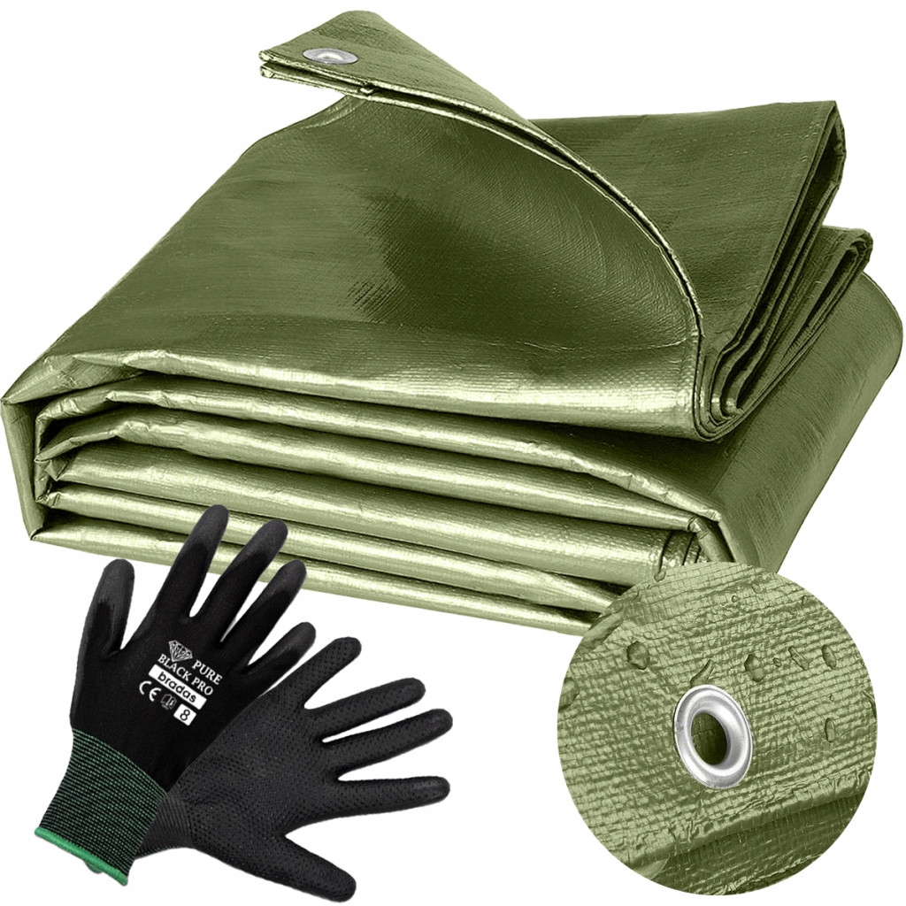 Robuste, Frostbeständige Schutzplane 6x8m Grün mit Gratis Handschuhen