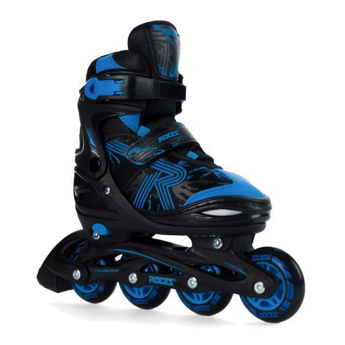Łyżworolki dziecięce Roces Jokey 3.0 czarno-niebieskie przeznaczone są dla dzieci i młodzieży do jazdy rekreacyjnej. Konstrukcja buta i ramy została wsparta systemem Growth Compensator, który daje możliwość regulacji rozmiaru za pomocą jednego przycisku.