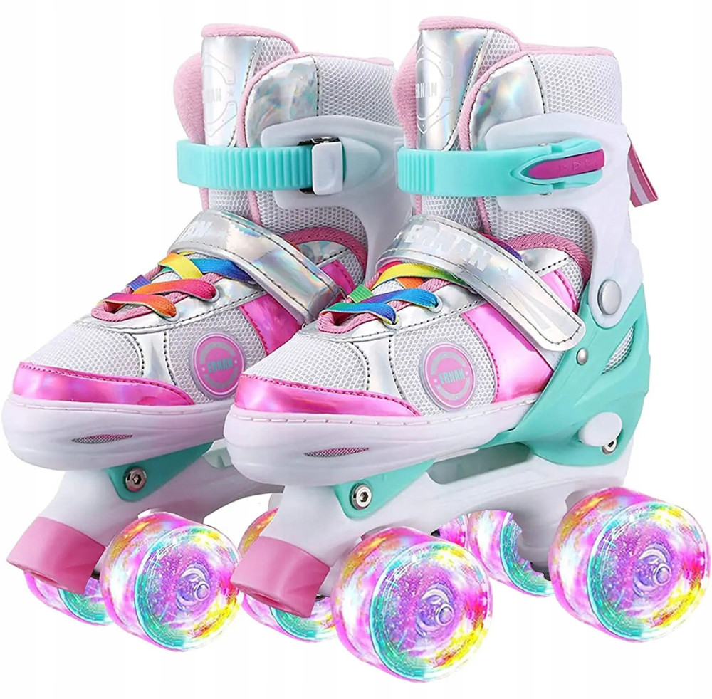 Regulowane wrotki dla dzieci. Prosta, regulowana konstrukcja przycisku, wrotki można dostosować do 4 różnych rozmiarów, aby dostosować się do różnych długości stóp.