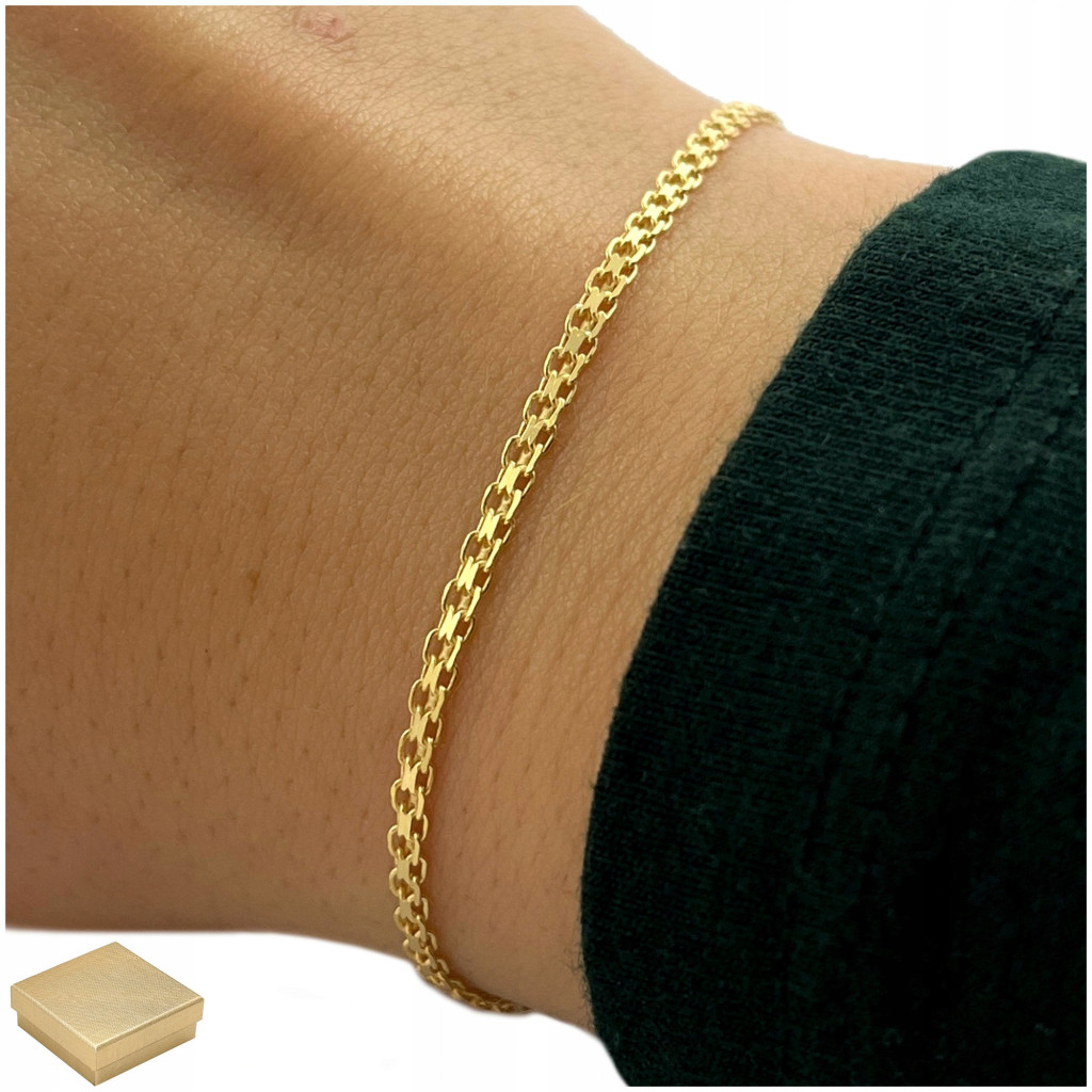✨ Przedstawiamy państwu delikatną, damską bransoletkę o splocie bismark. Produkt został wykonany z najwyższej jakości srebra próby 925. Całość została dodatkowo pokryta prawdziwym 14 karatowym złotem próby 585. Ten model bransoletki z pewnością doceni każda kobieta. Produkt jest solidny i wytrzymały, więc z pewnością posłuży długi czas.